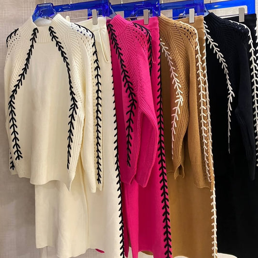 Hollow Out Lace White Flare Sleeve Short Crop Top + Pencil Pants Co ord