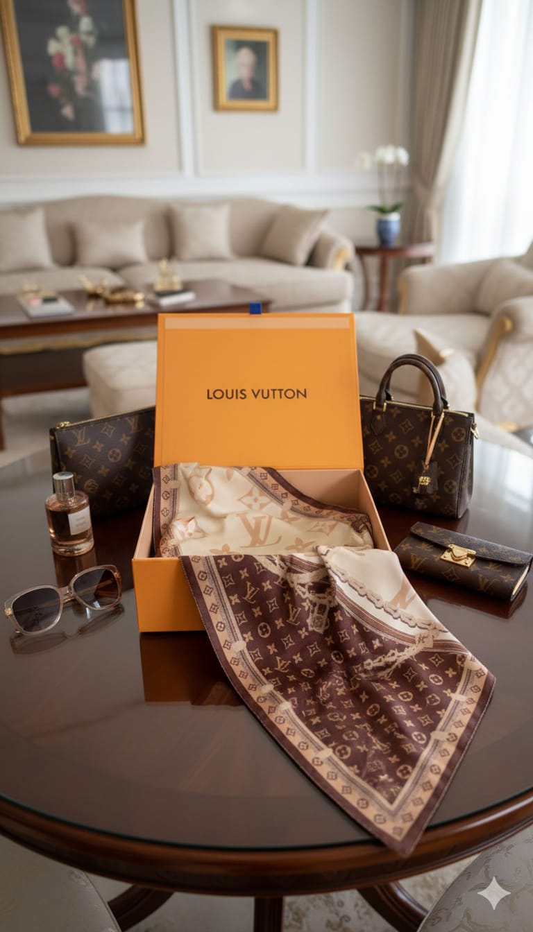Make a refined statement with this royal monogram evening shawl, designed for elegance and versatility. Crafted from a smooth, lightweight woven fabric, this piece features an all-over classic monogram pattern complemented by a richly detailed contrasting border. The soft ivory base paired with warm mocha tones creates a timeless palette, perfect for evening events, formal gatherings, or elevated everyday styling. Effortlessly draped over dresses or tailored outfits, this shawl adds warmth while enhancing your look with understated luxury.